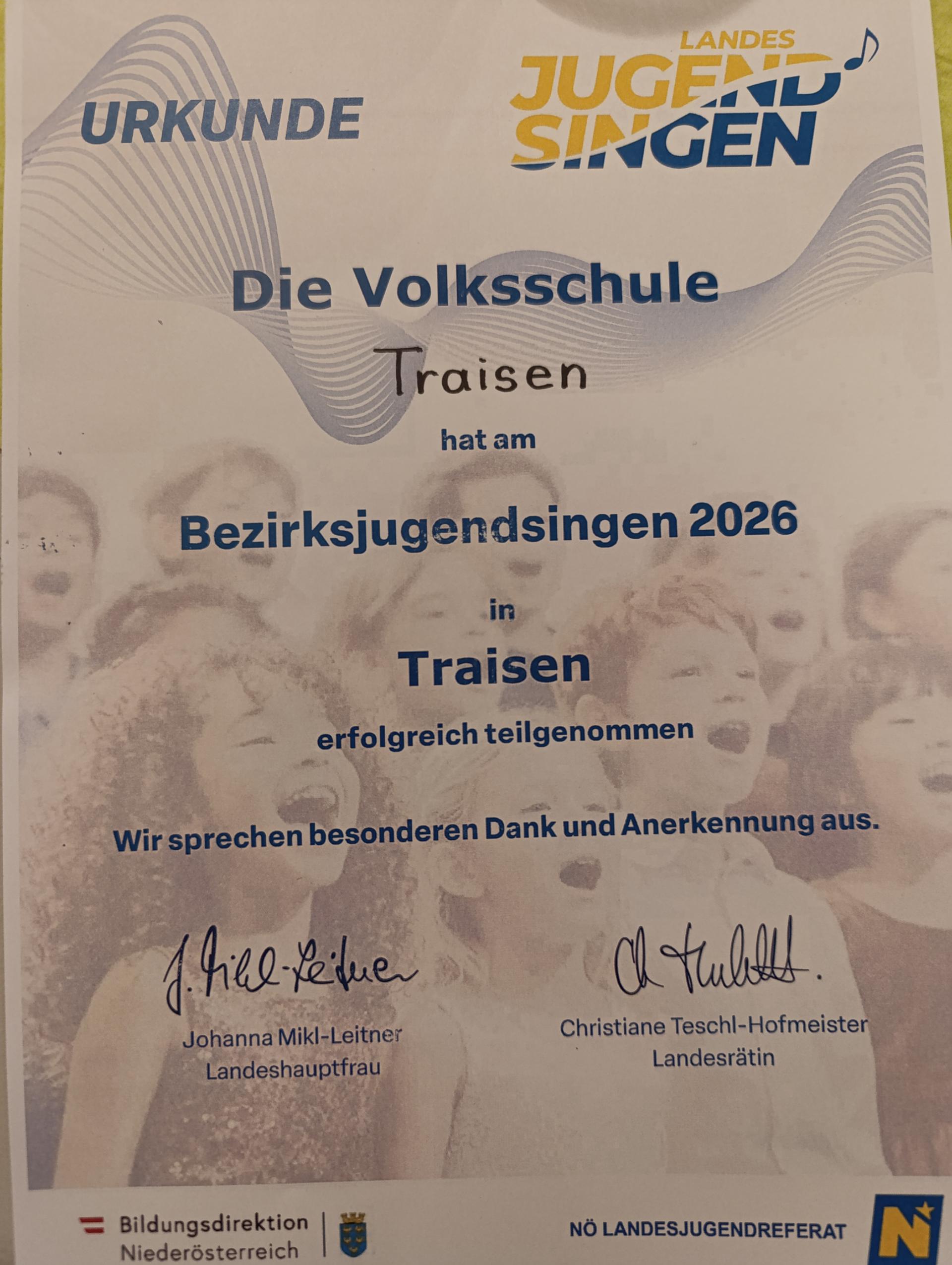 Der Chor der Volks- und Mittelschule Traisen unter der Leitung von Orsolya Heindl, begleitet von Zsofia Kausl, nahm am heurigen Bezirksjugendsingen teil.