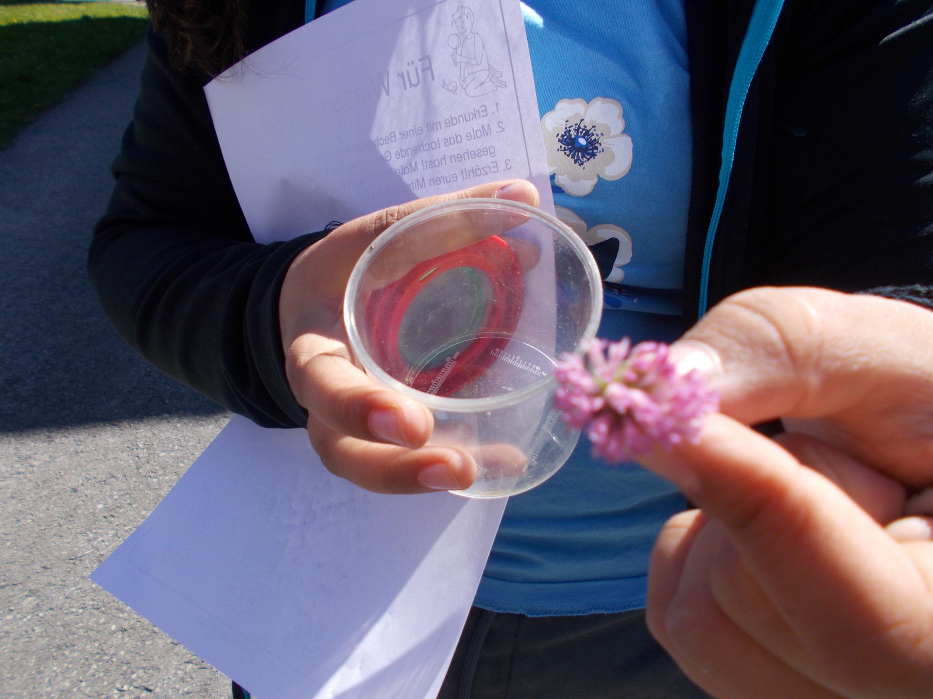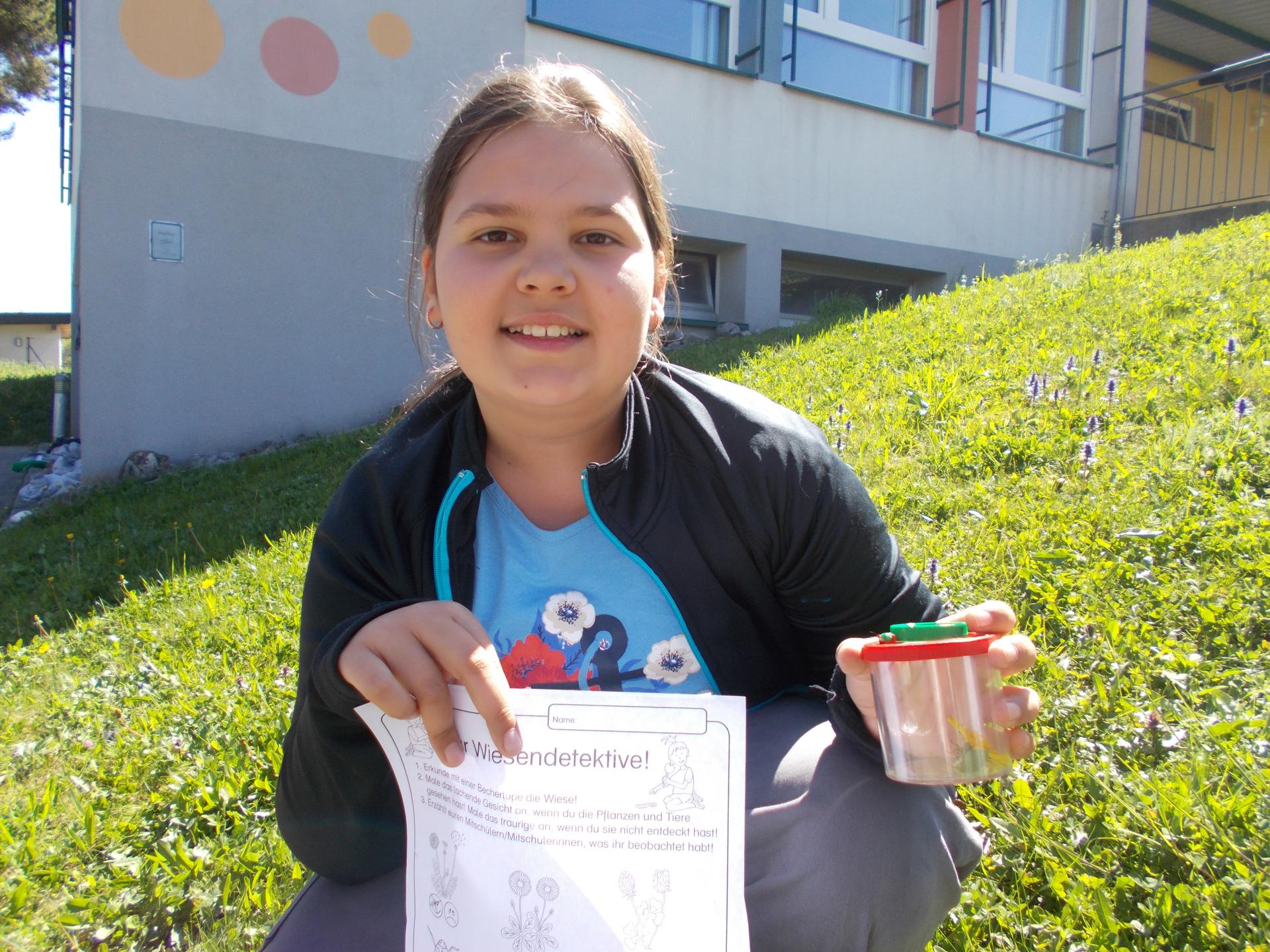 Die Kinder der 3a waren fleißig als „Wiesendetektive“ unterwegs. Sie entdeckten gemeinsam viele Pflanzen und Tiere und betrachteten sie genau unter der Becherlupe.